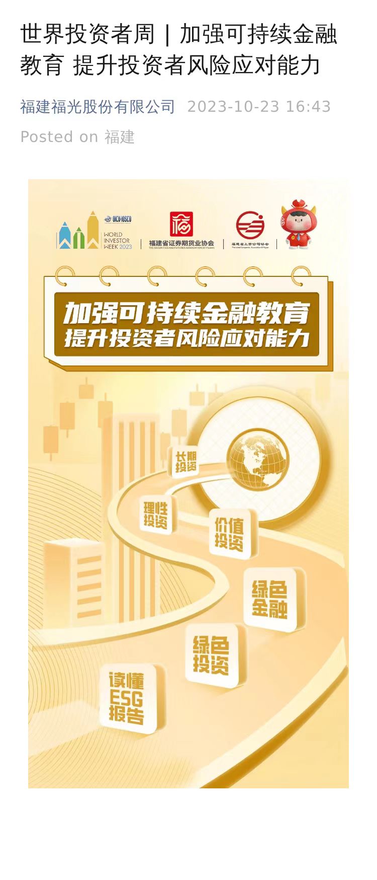 當前位置:新聞中心->世界投資者周 | 加強可持續金融教育 提升投資者風險應對能力