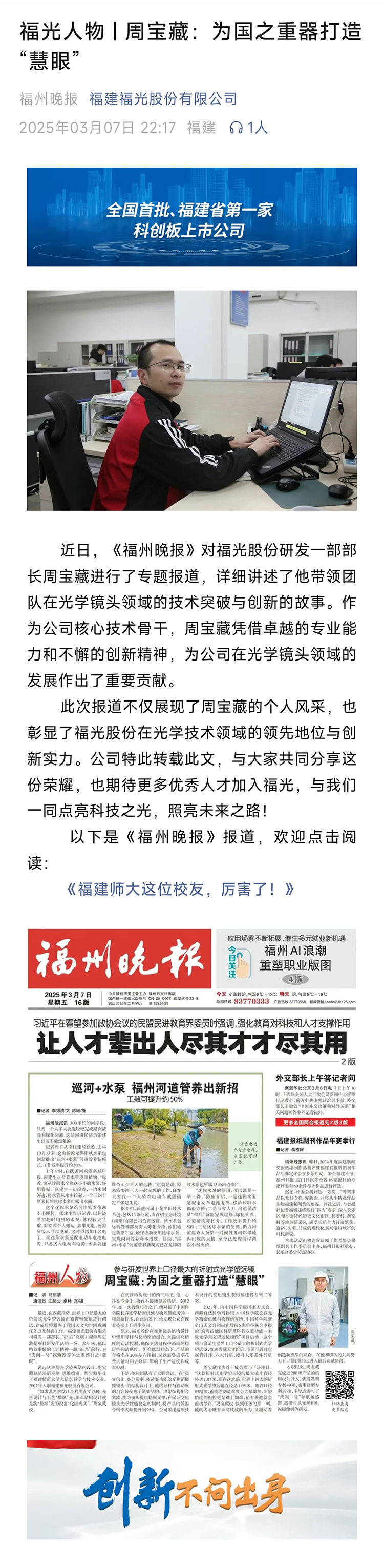 當前位置:新聞中心->福光人物 | 周寶藏:為國之重器打造“慧眼”